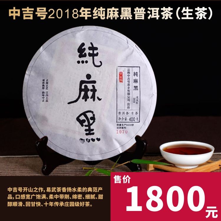 中吉号2018年纯麻黑普洱茶(生茶)口感宽广饱满、柔中带刚