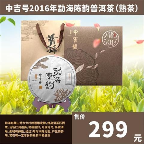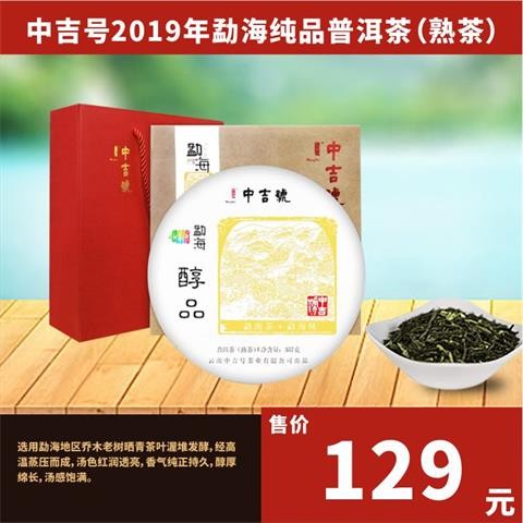 中吉号2019年勐海纯品普洱茶(熟茶)经高温蒸压而成,汤色红润透亮